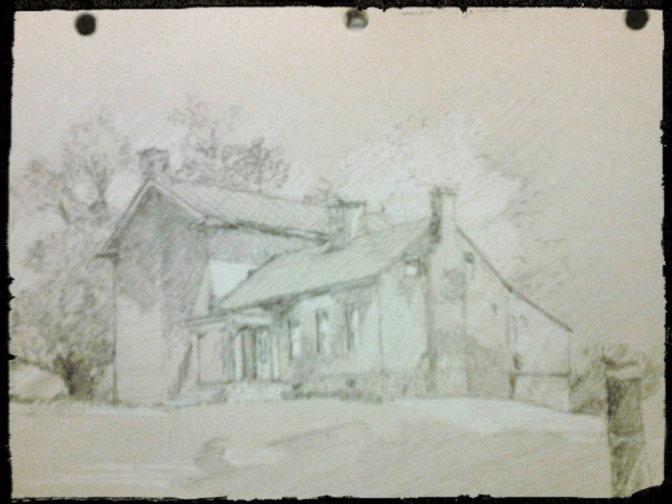 This was a great old house. It was demolished to make way for a wider road. Drawing by Mark Caldwell-Reiss